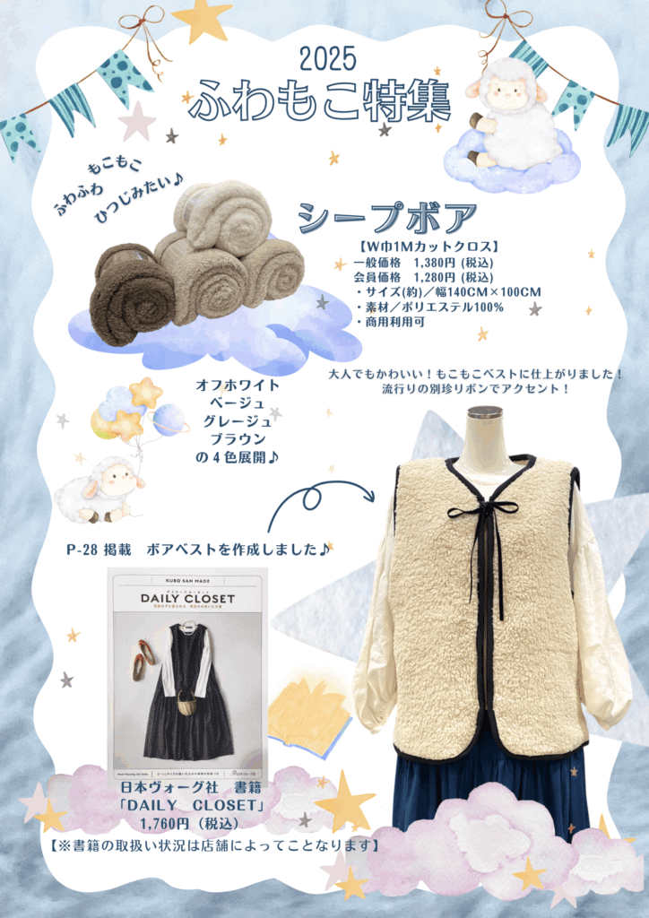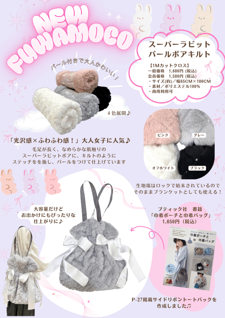 『ふわふわ・もこもこ』の生地で暖かくて可愛い♪
